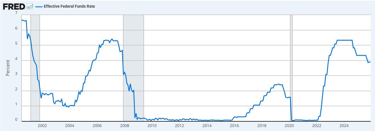 Historically, aggressive rate-cut sequences almost always occurred during periods of deep financial stress. The year 200 saw cuts shortly before the dot-com collapse. The 2008 sequence attempted to soften the impact of the global economic crisis. In early 2020, emergency cuts arrived just before markets broke under the pressure of the pandemic.