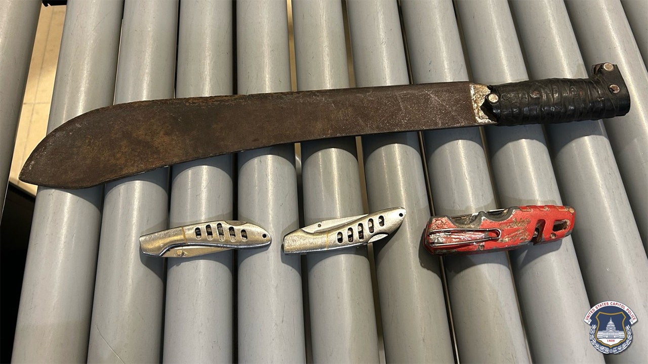 The U.S. Capitol Police stopped a man from entering the Capitol at a security checkpoint after he was found to allegedly have a machete and three knives in his bag. (U.S. Capitol Police)