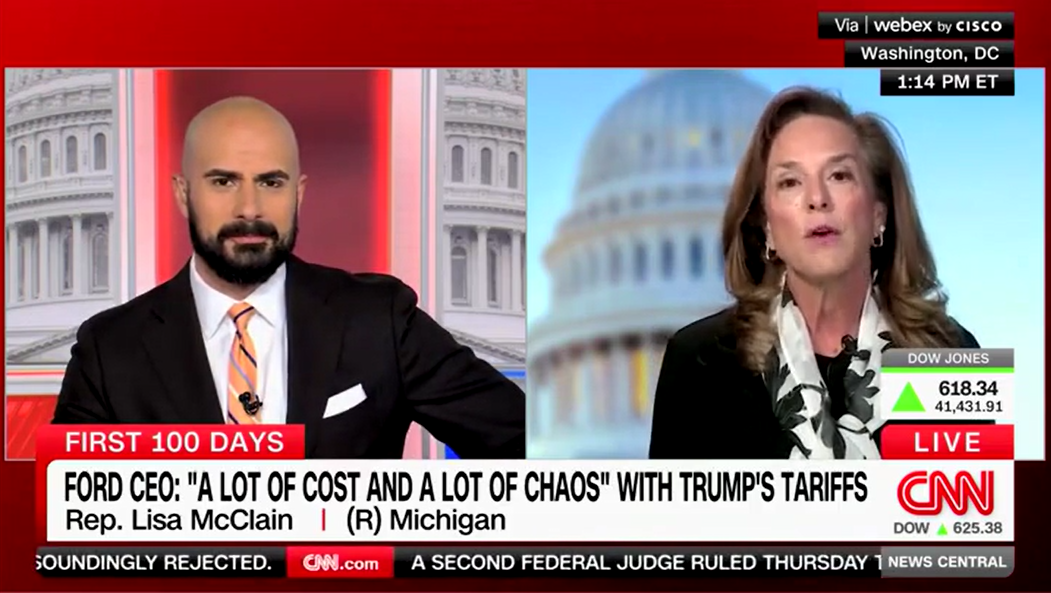 Rep. Lisa McClain, R-Mich., chastised CNN host Boris Sanchez Friday, saying he was “fearmongering” about the effects of tariffs. President Donald Trump’s agenda of using tariffs to protect American workers and industry has received both positive and negative reactions. The CNN host highlighted the criticism, quoting Ford CEO Jim Farley’s statement that Trump’s tariffs are … Read more