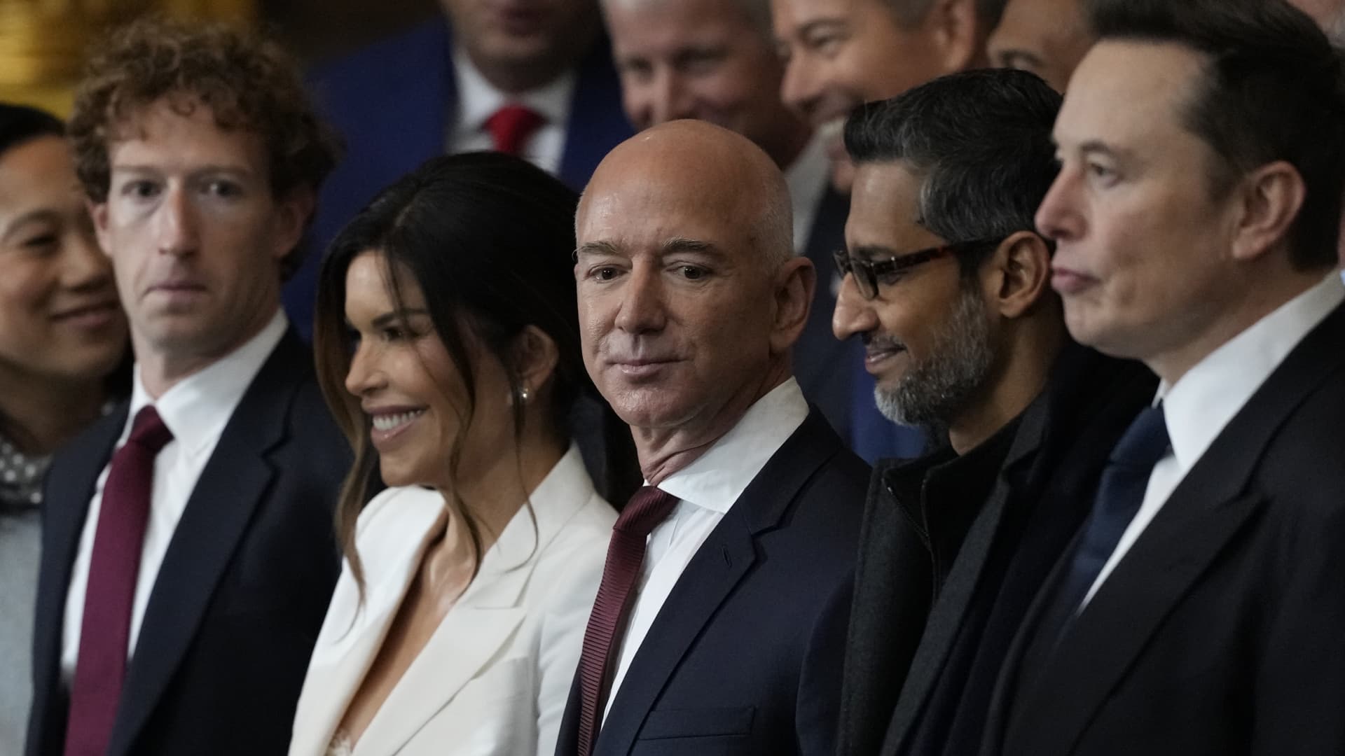 Guests including Mark Zuckerberg, Lauren Sanchez, Jeff Bezos, Sundar Pichai and Elon Musk attend the Inauguration of Donald J. Trump in the U.S. Capitol Rotunda on January 20, 2025 in Washington, DC. Donald Trump takes office for his second term as the 47th president of the United States.