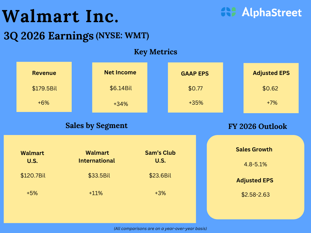 Walmart Inc. (NYSE: WMT) reported its third quarter 2026 earnings results today.